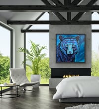 48x48 original painting. A reminder of the associations of shapeshifting and transformation that bears are associated with and the Anishnabe beliefs of the healing and protection that the Bear provides to Mother Earth